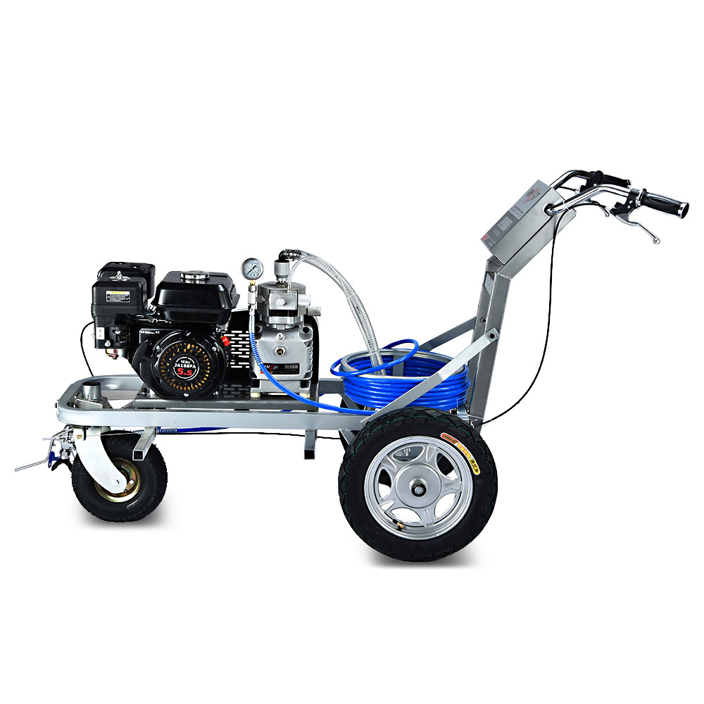 HYVST SPLM 850 - машина для нанесения дорожной разметки краской. Разметочная машина с одним пистолетом предназначена для нанесения сплошных и прерывистых линий краской на дорогу, разметки пешеходных переходов, нанесения дорожных знаков и надписей на дорогу, разметки парковочных мест около магазинов и выставочных залов, разметки спортивных площадок и футбольных полей. Разметочную машину можно использовать только с краской, пригодной для безвоздушного распыления. Также машину можно использовать для разметки дорожных бордюров, мостовых конструкций, столбов фонарного освещения, можно также ее использовать как бензиновый окрасочный агрегат и красить фасады зданий и бетонные заборы.